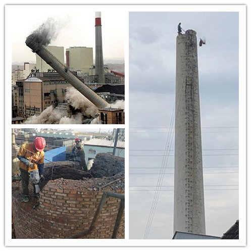 底部爆破切口的方案是詳細(xì)分析灰斗結(jié)構(gòu)后提出的。其主要思想是煙囪底內(nèi)部3m高度內(nèi)僅有4根立柱,通過(guò)驗(yàn)算,4根立柱可預(yù)先炸除,改為中心1根磚柱支撐三叉梁能保證上部灰斗結(jié)構(gòu)的穩(wěn)定,這樣底部切口高度內(nèi)并無(wú)復(fù)雜的不對(duì)稱(chēng)結(jié)構(gòu),另外底部預(yù)留部分雖然有不對(duì)稱(chēng)的出灰口,但可采取一定措施來(lái)糾正對(duì)稱(chēng)性,而且國(guó)內(nèi)有多個(gè)高煙囪底部爆破切口定向倒塌的成功經(jīng)驗(yàn)和實(shí)例。底部爆破缺口施工較為方便,切口精度容易保證。但灰斗內(nèi)余灰、爐碴、混凝土和鋼斗等必須預(yù)先清除,背后出灰口應(yīng)封堵,預(yù)處理工作較多。下面對(duì)底部切口爆破的具體參數(shù)作如下詳細(xì)介紹。